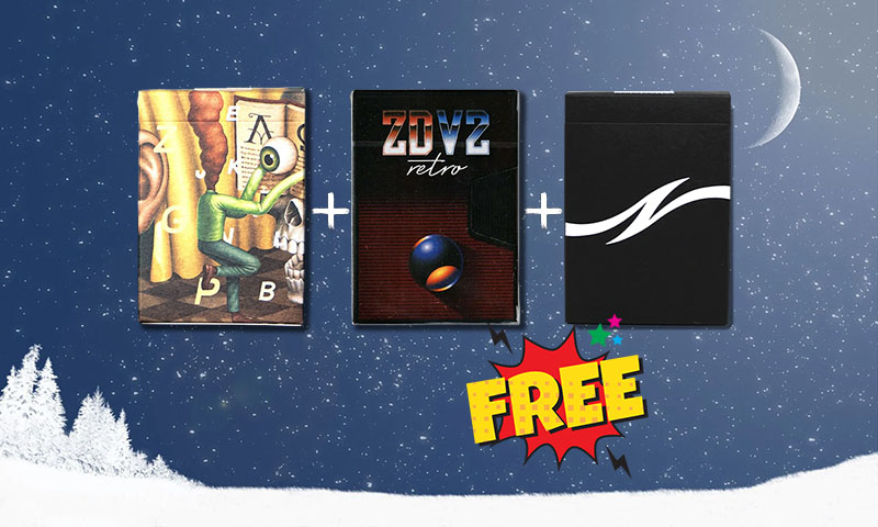 Зазвичай ми продаємо якісні гральні карти для фокусів, гри в покер і кардістрі, а от в грудні - віддаємо їх безкоштовно. За умови, що ви купуєте будь-що на суму $50 (2100 грн) ви отримуєте нашу останню колоду Strange Curiosities, покупка у $100 (4200 грн) дає вам зверху ще нашу продану ZDV2, $200 (8400 грн) - Z Deck на додачу. Самі по собі вони, до речі, вже йдуть по ціні $80 за колоду на eBay.